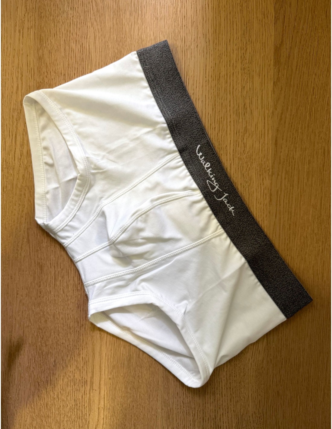 PRESALE 10% OFF! Estimated Delivery Mid May 2026. White trunks by Walking Jack with contrasting, grey melange waistband. High quality underwear that goes the distance for men who appreciate comfort and contemporary style. This garment is designed in Greece and manufactured in Portugal.